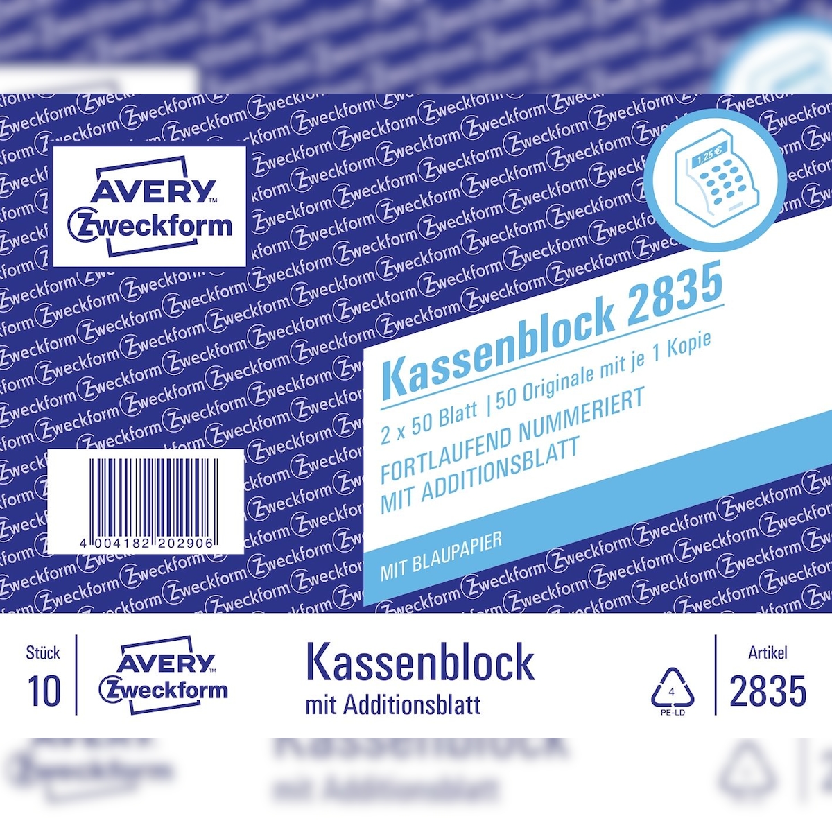 Avery Zweckreform 2835 Kassenblock Kompaktblock fortlaufend nummeriert 2 x 50 Blatt weiß(P)