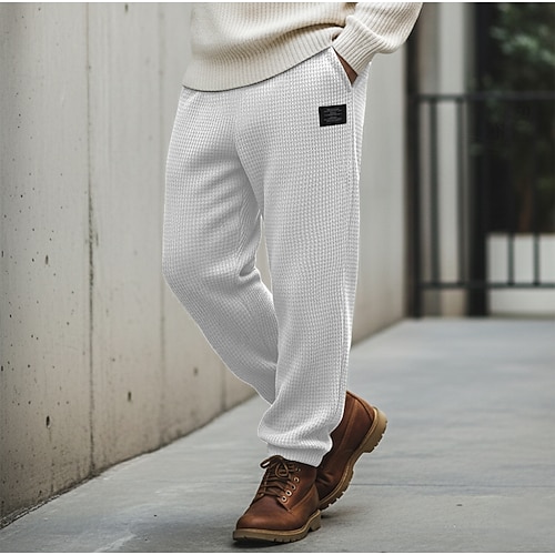 Per uomo Nido d'ape Pantaloni da tuta Joggers Pantaloni Pantaloni casual Coulisse Polsino elastico Tinta unica Comodità Lunghezza intera All'aperto Casuale Quotidiano Moda Stile Classico Nero Bianco