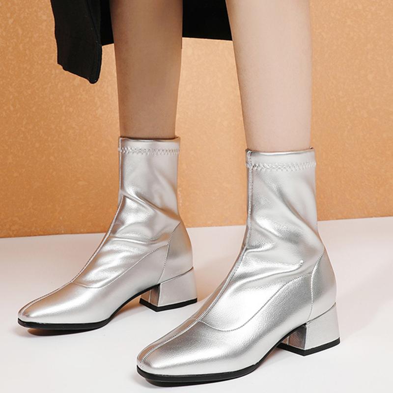 Classic White Ankle Boots for Women Low Heel Short Boot Lady Slip On Patent Leather Gold Silver Party Dance Shoes Autumn Winter cm gold