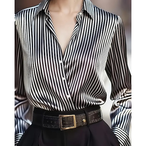 Per donna Camicia Elegant Elegante Raso/Satin A righe Elegante Essenziale Casual Manica Lunga Colletto a Camicia Top Regolari Quotidiano Uscire Bottoni Nero Marrone Verde Albicocca Primavera Autunno