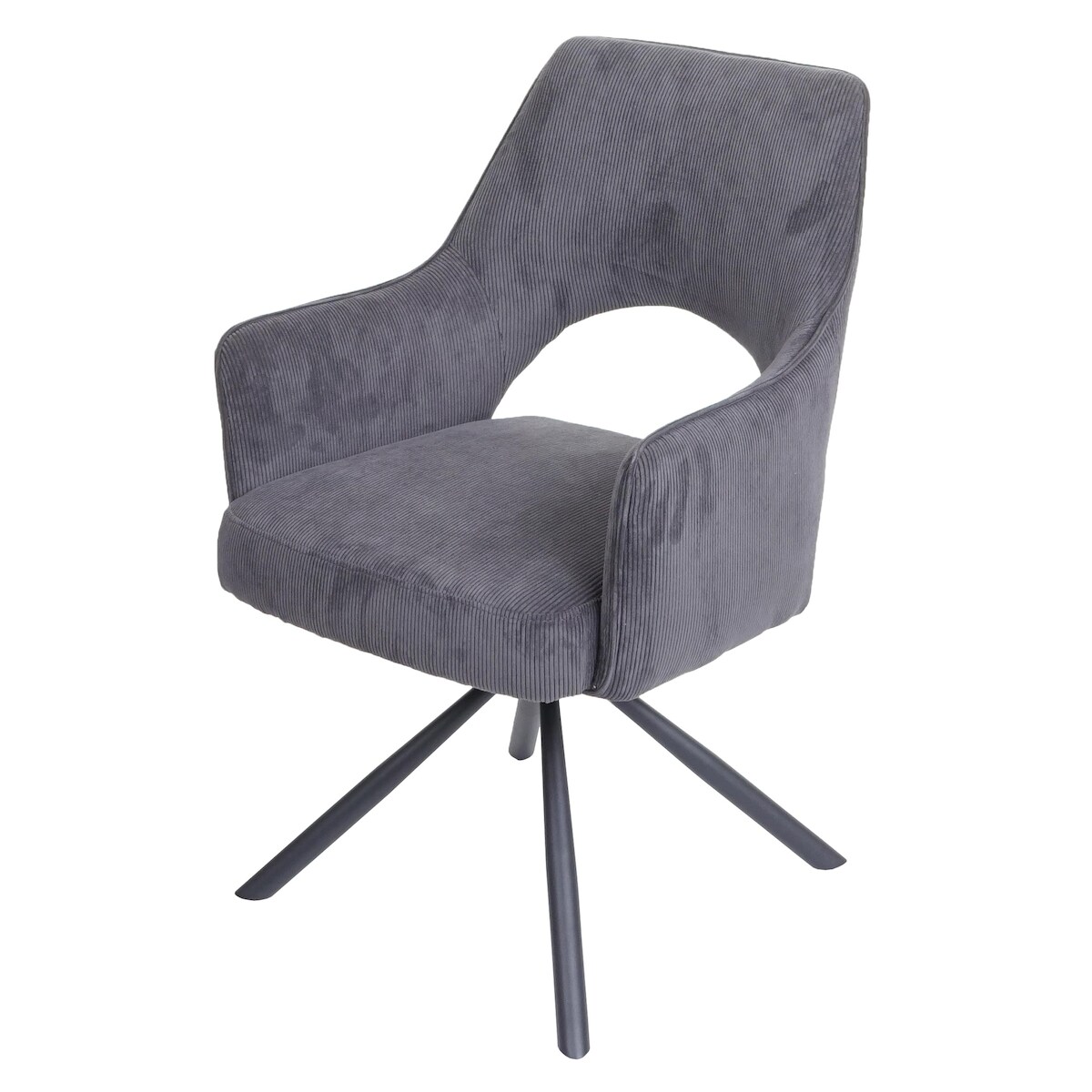 Mendler Esszimmerstuhl HWC-K30, Küchenstuhl Lehnstuhl, drehbar Auto-Position, Stoff/Textil MVG ~ Kord-dunkelgrau