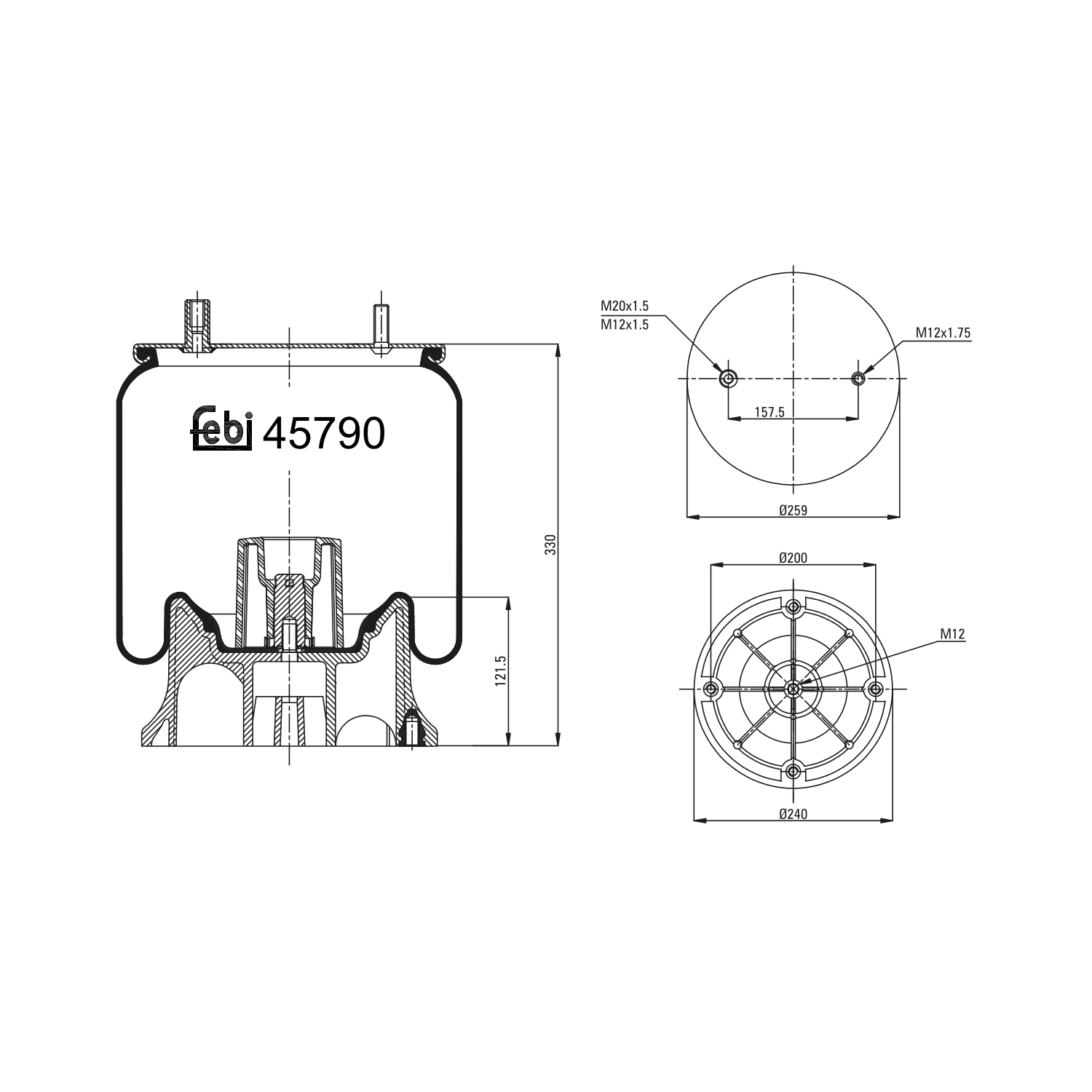 FEBI BILSTEIN Federbalg, Luftfederung 45790 Universal mit Kolben 240mm