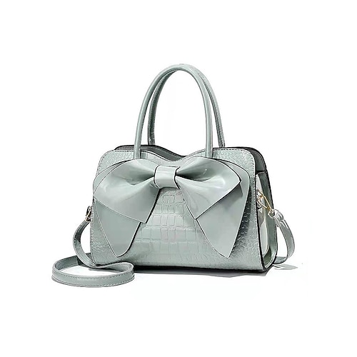 borsa da donna in similpelle con dettaglio fiocco – motivo coccodrillo, vari colori, tracolla regolabile, stili di trasporto versatili per occasioni casual e formali