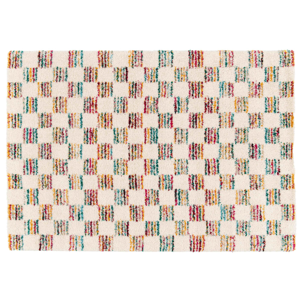 Tappeto a pelo lungo con motivo quadrato multicolore 120 x 170 cm
