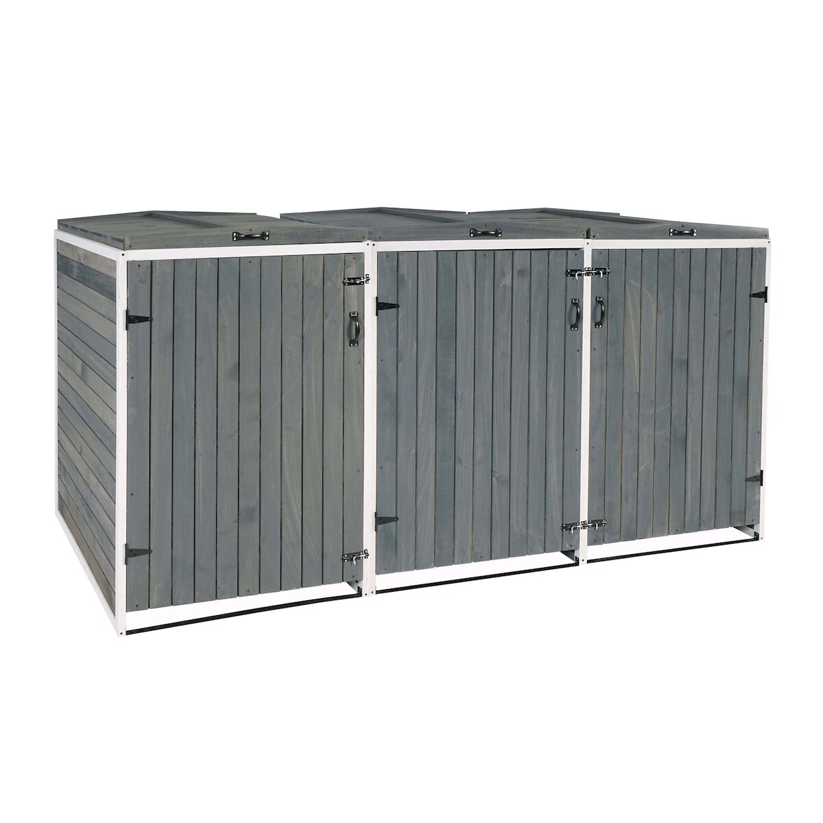Mendler XL 3er-/6er-Mülltonnenverkleidung HWC-H74, Mülltonnenbox, erweiterbar 126x238x98cm Holz MVG ~ grau-weiß