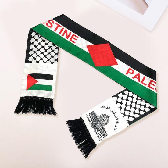 Palestina Nation Flaggatryck Scarf Fringed Satin Färgmatchning Unisex Patriotism Slät Custom Palestina National Day Party Parade Neck Wrap
