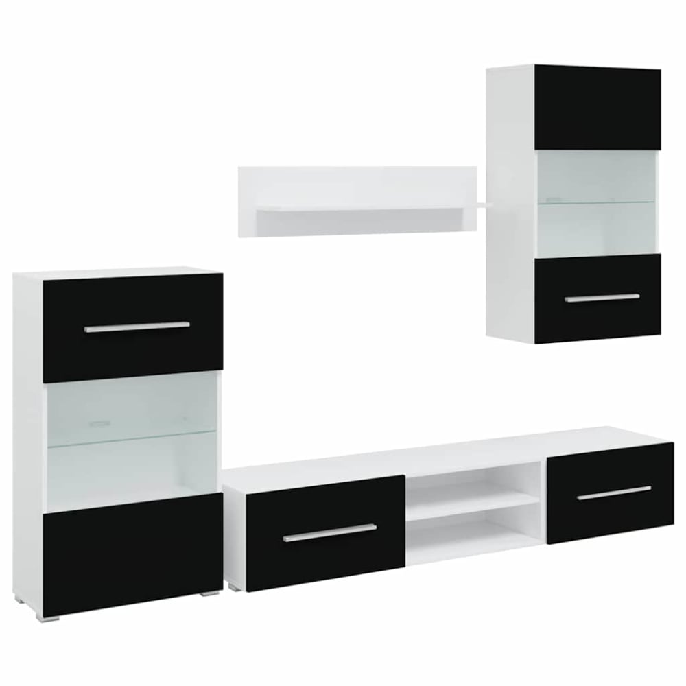 Mobile porta tv 5 pz a Parete in legno nero 240x40x195 cm