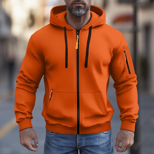 Per uomo Felpa con cappuccio Felpa con cappuccio a zip intera Felpa con cappuccio in pile Aalbicocca Nero Verde militare Blu marino Grigio chiaro Con Cappuccio Semplice Tasca Sport Outdoor
