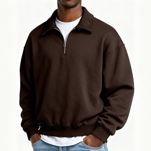 Per uomo Polo Polo con zip a un quarto Vacanza Streetwear Zip a un quarto Manica Lunga Moda Essenziale Semplice Primavera Autunno Vestibilità su misura Blu Nero Verde Grigio chiaro Caffè Polo