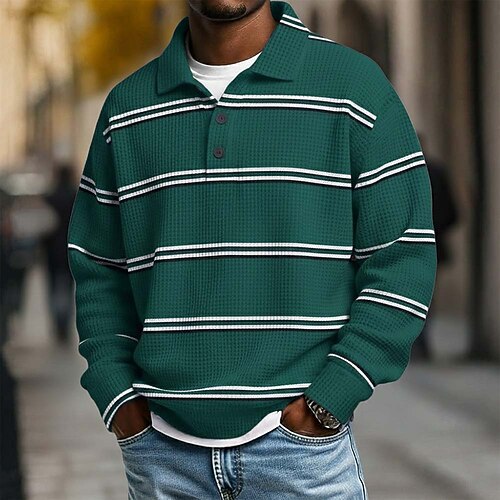 Per uomo Strisce orizzontali Magliette Polo a Nido d'Ape Polo da rugby Testurizzato Manica Lunga Magliette polo Bavero Abbigliamento Sportivo Casual Scuola Athleisure Abbigliamento quotidiano Stampa