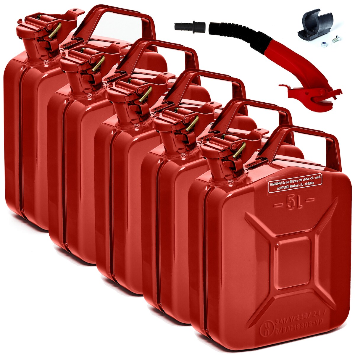 BW® Kraftstoffkanister Metall Benzinkanister 5x 5 Liter mit Ausgießer - Rot - RAL 3000 - TÜV-geprüft und UN-Zulassung - Made in Europe