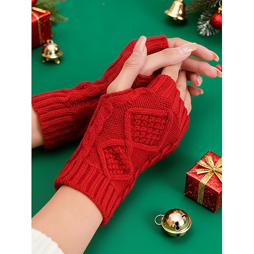 guanti senza dita in maglia da donna, comodi scaldamani invernali in maglia a trecce, eleganti accessori regalo di Natale per donne