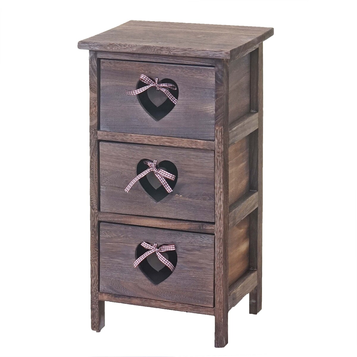 Mendler Kommode Forli, Schubladenkommode Schrank, 3 Schubladen mit Herzen 55x29x25cm, Shabby-Look, Vintage ~ braun