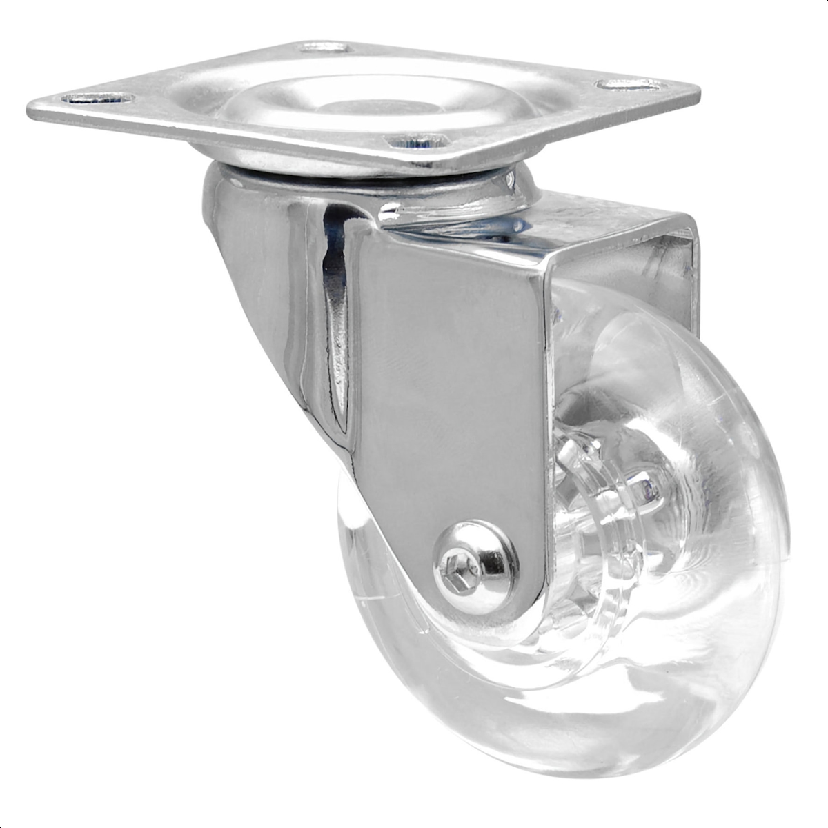 WAGNER Soft-Lenkrolle SKATER - Ø 60 mm, Stahl verchromt, transparent, Anschraubplatte, Tragkraft 50 kg - 03108601