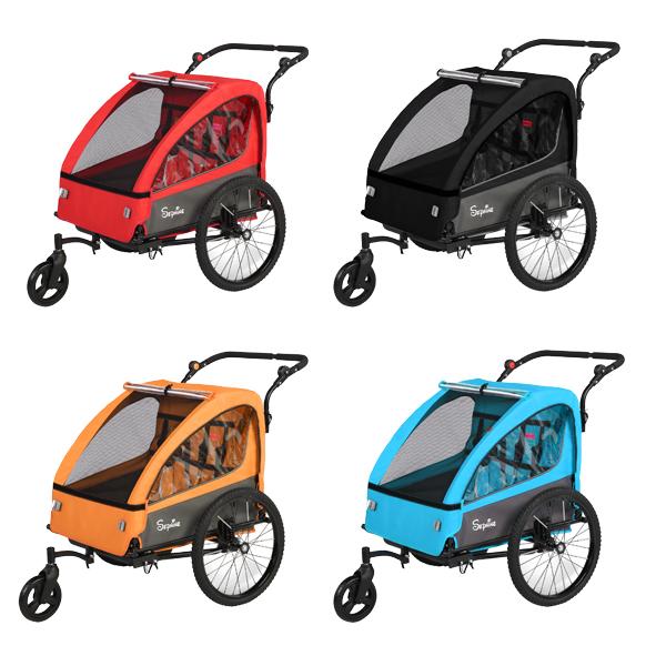 SEPNINE 2-i-1 Barncykelkärra & Barnvagn med Fjädring, Max för 1-2 Barn, Joggarfunktion, Hopfällbar Design, Rymligt Förvaringsutrymme svart