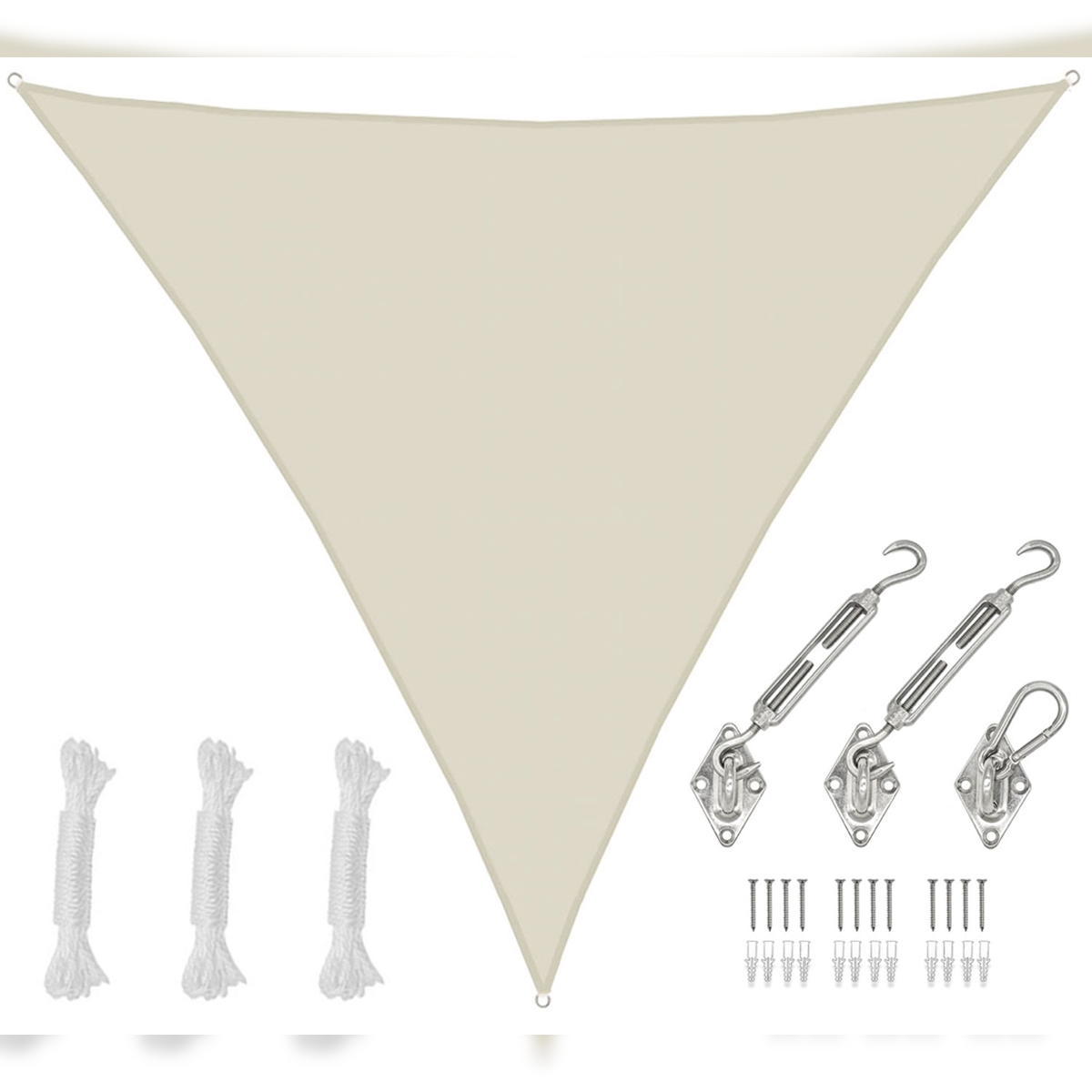 7x7x7 Sonnensegel Dreieckig Wasserdicht - Sonnenschutz Segel Set mit Befestigung