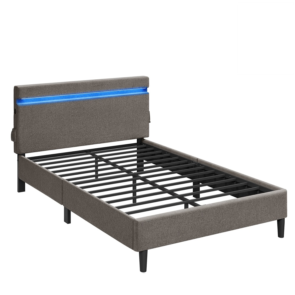Letto a cassettone con testiera 160x200cm in velluto grigio