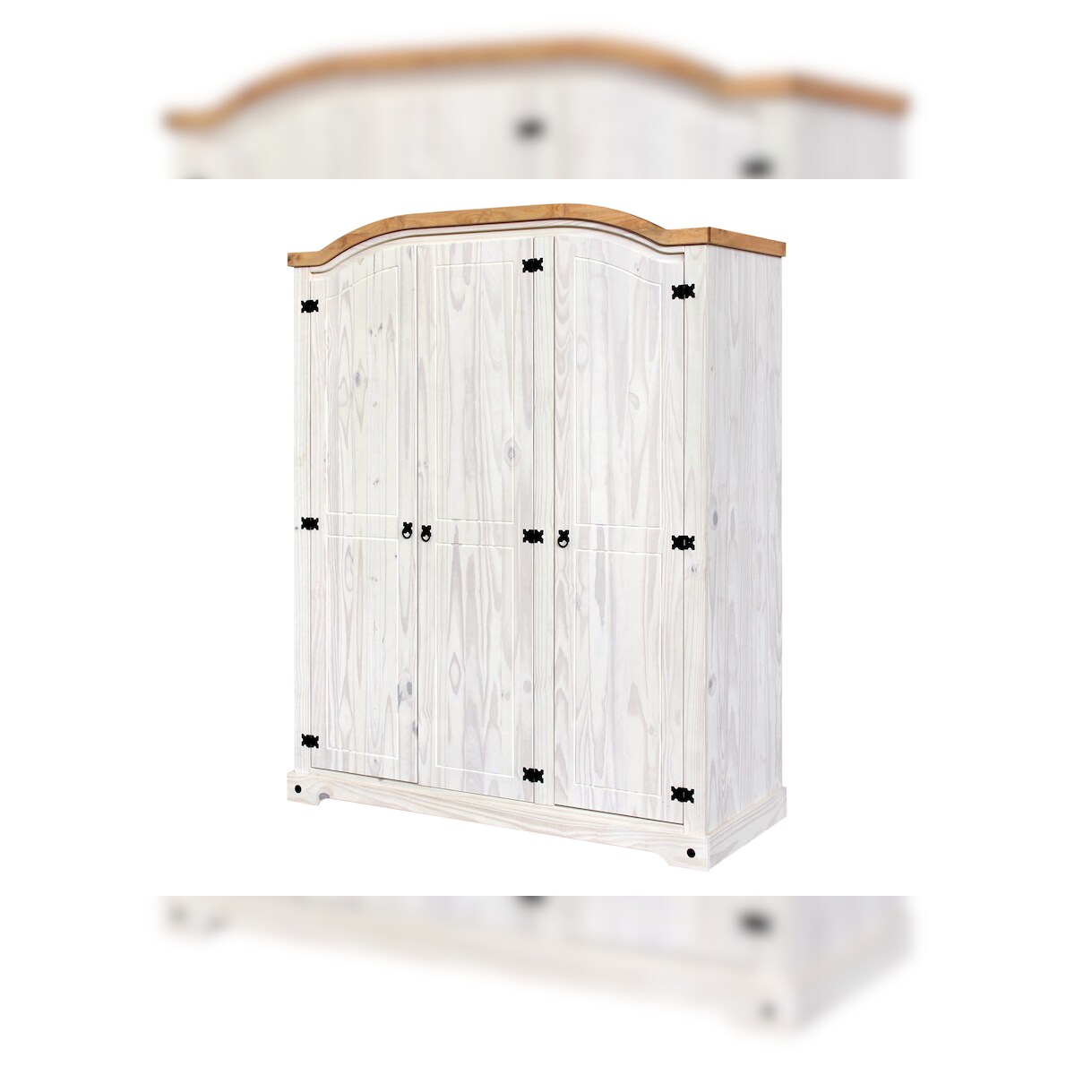 Möbilia Kleiderschrank | 3 Türen | Kiefer massiv | B 149 x T 56 x H 188 cm | weiß lackiert, honigfarbend |19020046