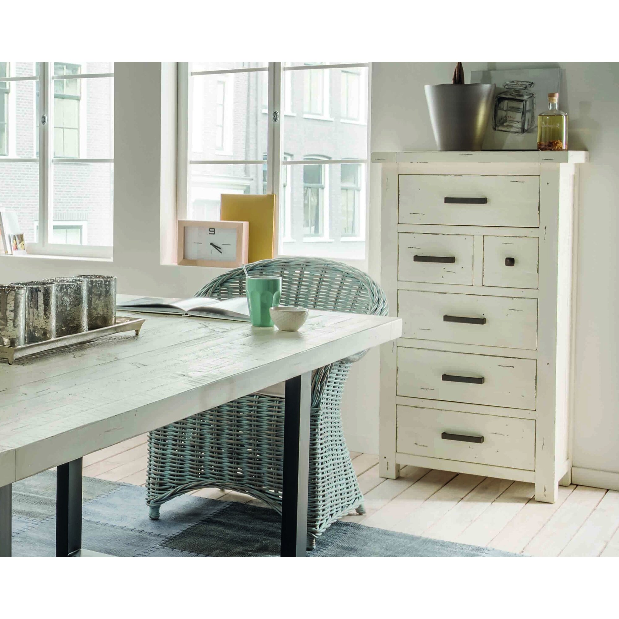 Massivholz »History Pine« Kommode Pinienholz, white-wash-finish / B 65 x H 120 x T 37 cm