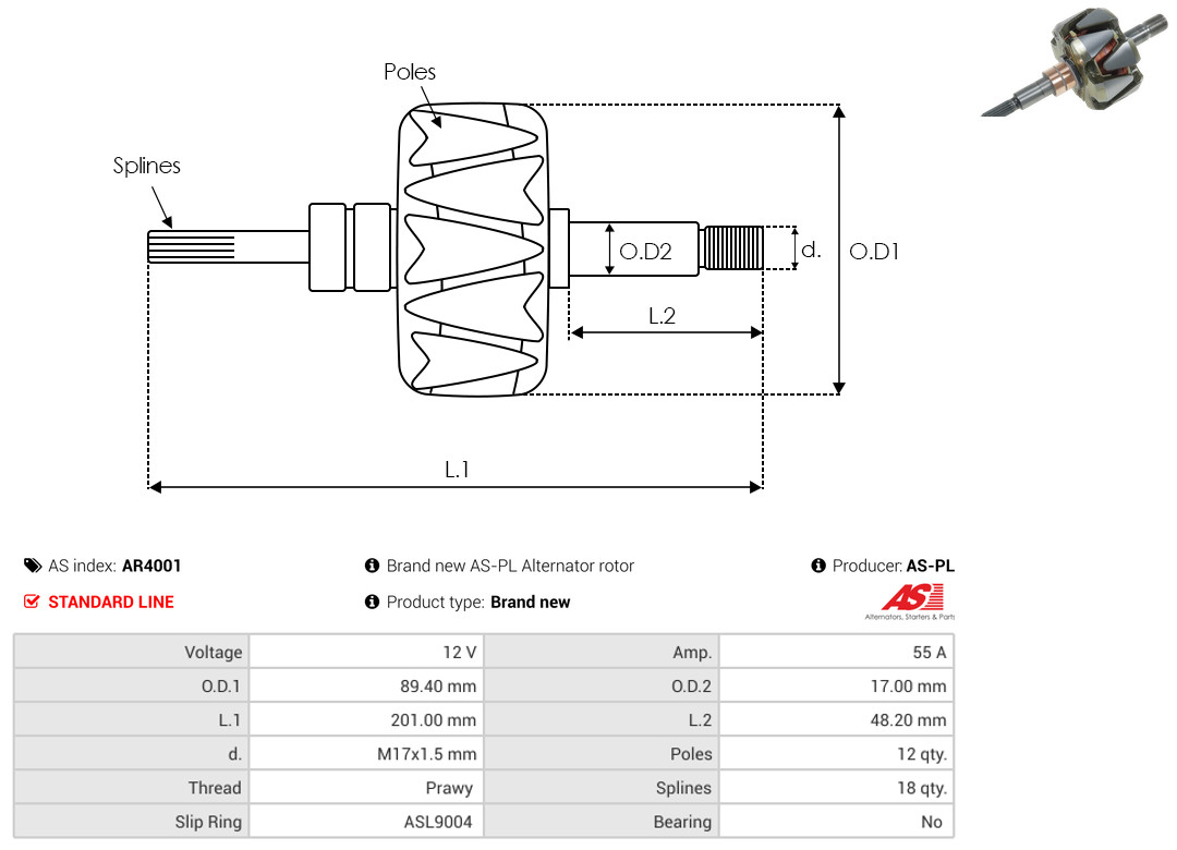 AS-PL Generator A4011 12V 55A für MITSUBISHI VW FORD ROVER 86AB10300ABA 054903015F 78903016A