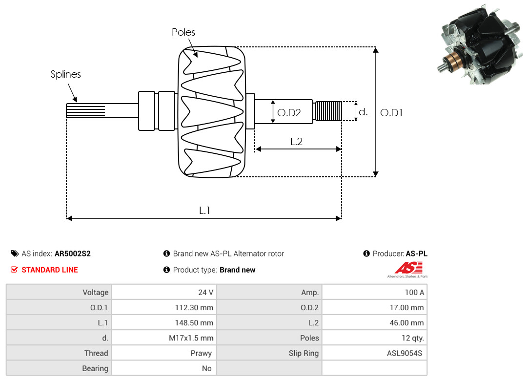AS-PL Stator, Generator AS5051S Universal 24V 100A