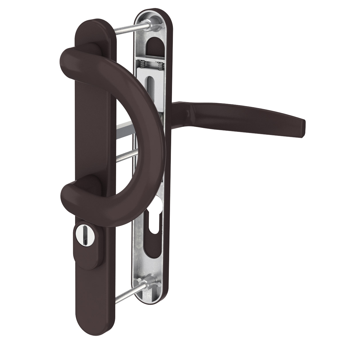 MS Beschläge Langschildgarnitur 72mm Schmalrahmengarnitur Braun PZ Drücker/Drücker 39-54mm