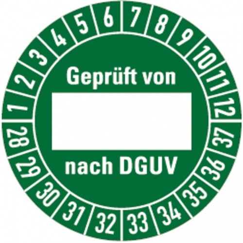 Dreifke® Prüfplakette geprüft von ... nach DGUV ab 2028, grün/we - 30 mm Folie selbstklebend, 10 St