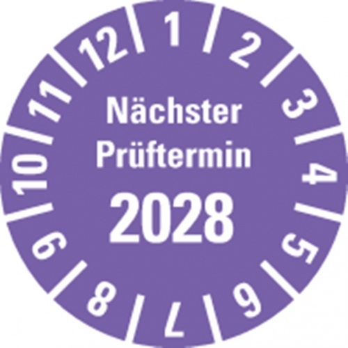 Dreifke® Prüfplakette 2028, violett, Folie, ablösbar, Ø 20mm, 36 Stk.