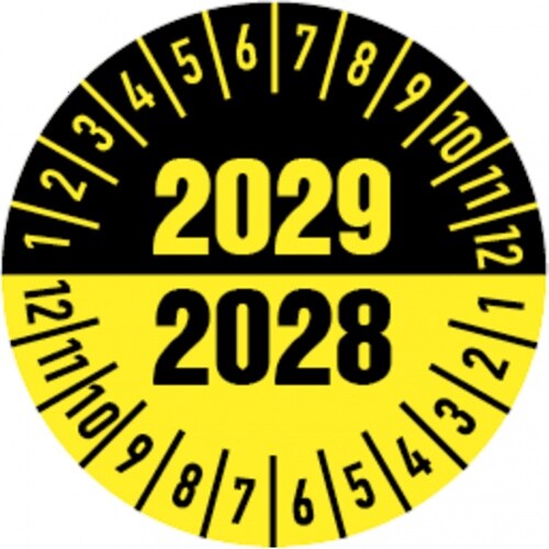 Dreifke® Prüfplakette ELEKTRO-CHECK Geprüft.., 2028, gelb, Dokumentenfolie, Ø 20mm, 36 Stk.