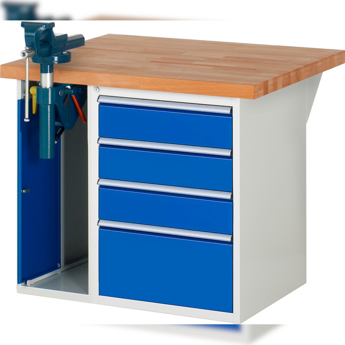 PROREGAL Werkbank Serie 7000 - Modell 7510 | HxBxT 84x100x90cm | 4x Schublade + 1x Schrank inkl. SchPROREGALbstock | Schubladenmaße 3x150 + 1x270mm