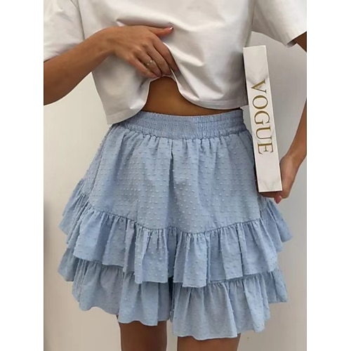 Per donna Casual Mini Vita media Gonne Semplice Arricciato Stratificato Elasticizzato Streetwear Uscire Nero Bianco Rosa Azzurro chiaro Estate Spandex Cotone