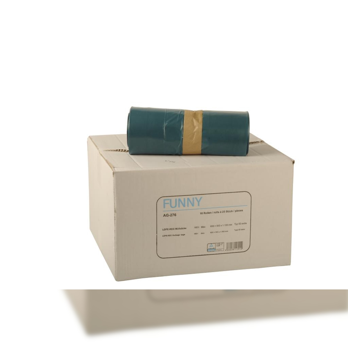 Plock GmbH Müllbeutel Funny - 250 Abfallbeutel - blau - ca. 160 L - Müllsäcke Typ 60 extra
