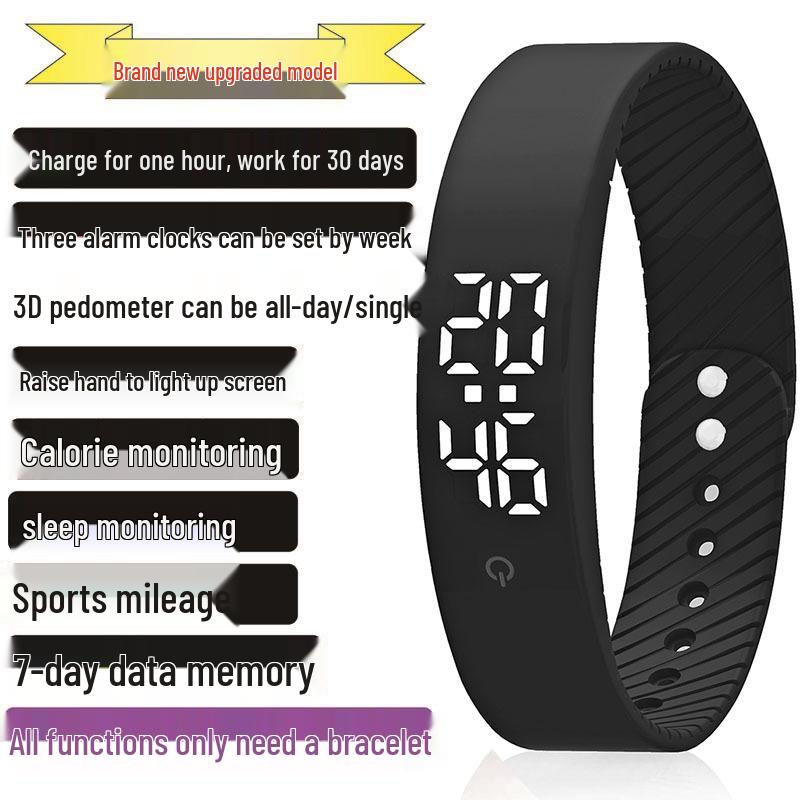 Smarter Vibrationswecker mit Gesundheits-Schrittzähler und Schlaftracker schwarz