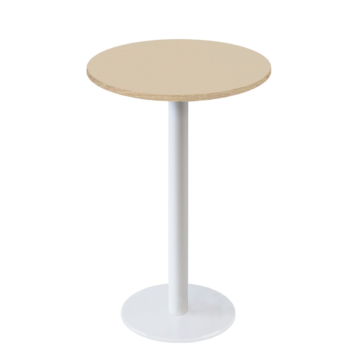 RestooTab - Stehtisch Rome weiß Ø60 Dekor Coquille matt Kanten in Holzoptik