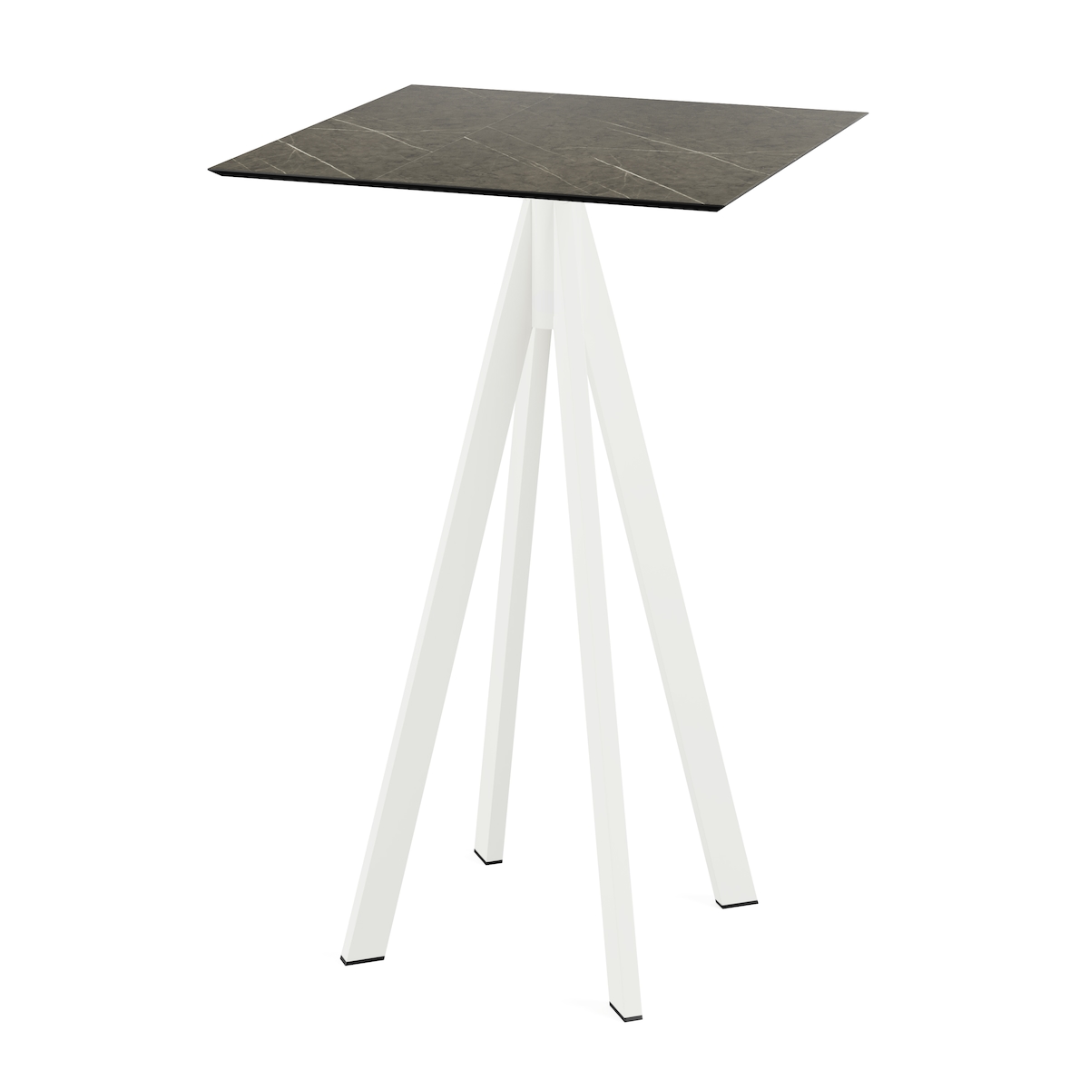 Feros Infinity Stehtisch Weiß gestell + Midnight Marble HPL 70x70 cm