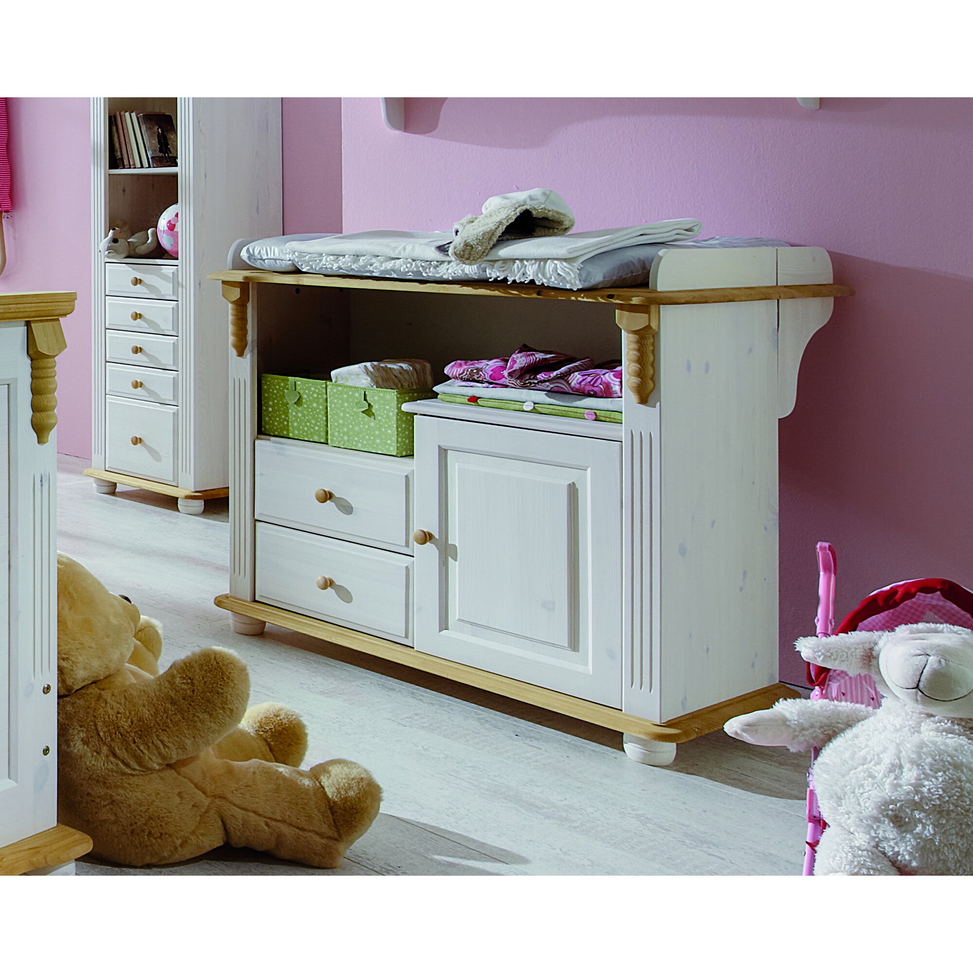 Wickelkommode OTTO HOME "Aimo", Kommode, Landhausstil, mit edlen Messinggriffen und Details", Baby, Gr. B/H/T: 92cm x 96cm x 77cm, weiß (weiß, weiß), HDF, Holzwerkstoff, Massivholz, Fräsungen, uni, Wickelkommoden Wickelkommode, aus Massivholz (Kiefer); FS