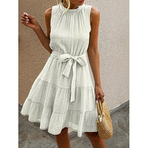 Per donna Mini Abito Abito a trapezio Abito Estivo Casual Quotidiano Vestibilità regolare Semplice Senza Maniche Girocollo Bianco Estate