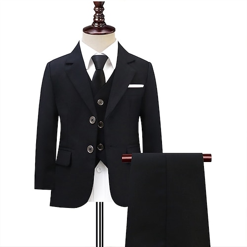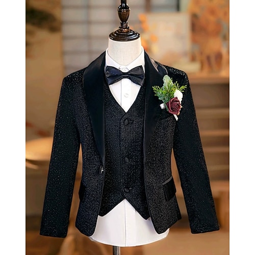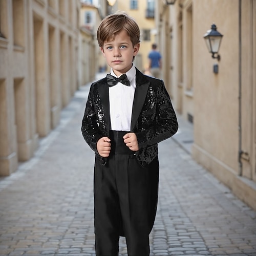 Completo da paggetto Ragazzi Bambini Abito Blazer, gilet, pantaloni, camicia e cravatta Casuale All'aperto Feste Moda Cool Essenziale Tinta unica Paillettes Tasca Bottoni Nero Poliestere