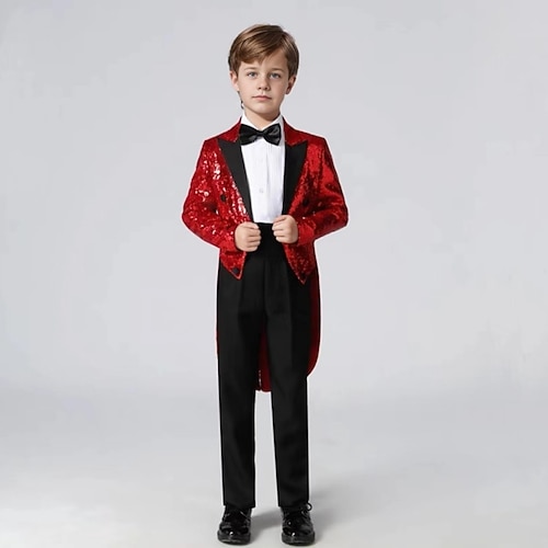 4 pezzi Completo da paggetto Da ragazzo Bambino Tuta Abito formale Blazer e pantaloni Formale Feste San Valentino Di tendenza Fantastico Tinta unica Tasche Rosso Blu Verde Poliestere