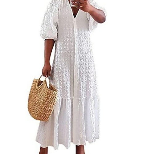 Per donna Abito Midi Abito a trapezio Abito Estivo Casual Quotidiano Vestibilità regolare Semplice Manica Corta Scollo a V Bianco Estate