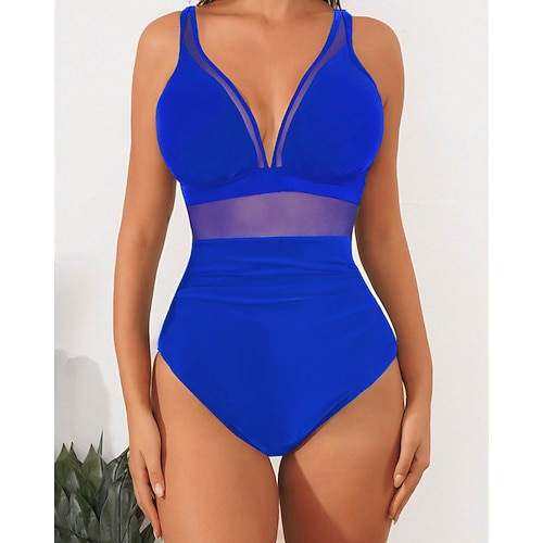 Per donna Costume da bagno Costumi da bagno One Piece Tinta unita Tropicale Protezione UV Alta elasticità Senza Maniche Costume da Bagno Rete Surf Immersione Snorkeling Estate