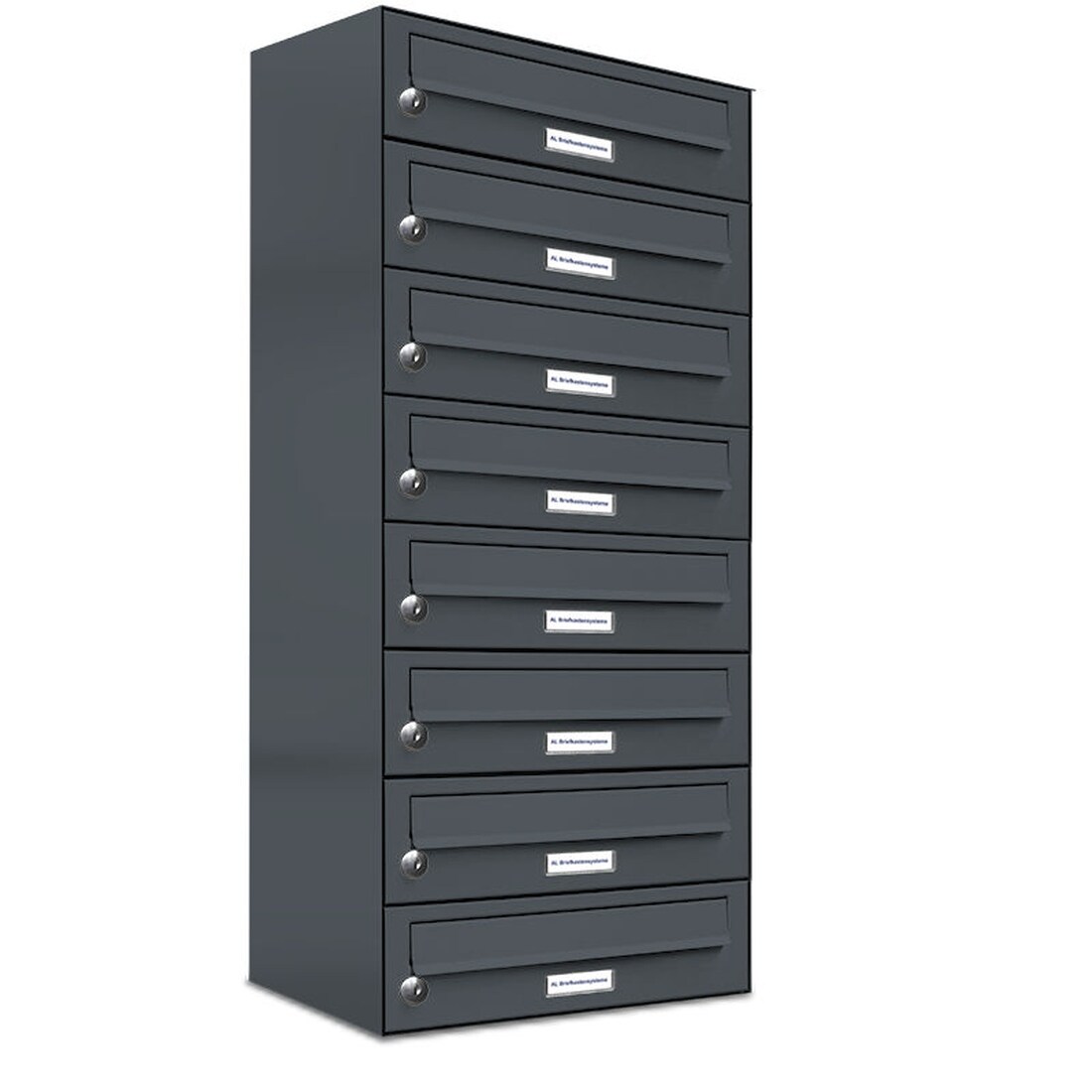 AL Briefkastensysteme 8 Fächer Premium Durchwurf Briefkasten A4 in RAL 7016 Anthrazit Grau, Post A4, robust, wetterfest, Artikelnummer 331P8DZ3KSP7016