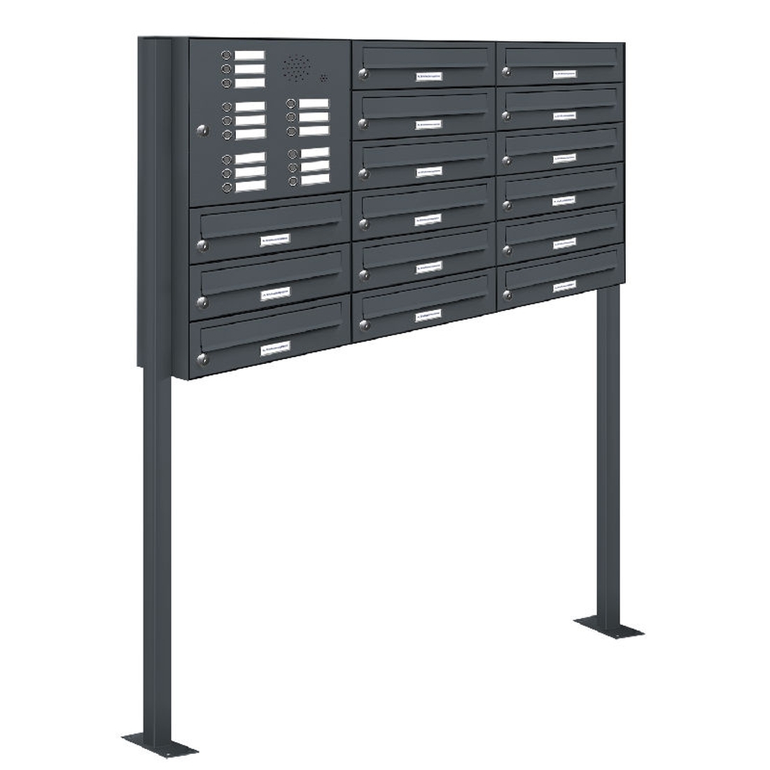 AL Briefkastensysteme 15 Fächer Premium Stand Briefkasten Anlage in RAL 7016 Anthrazit für Post A4, robust, wetterfest, Artikelnummer: 132P15S3KSP7016