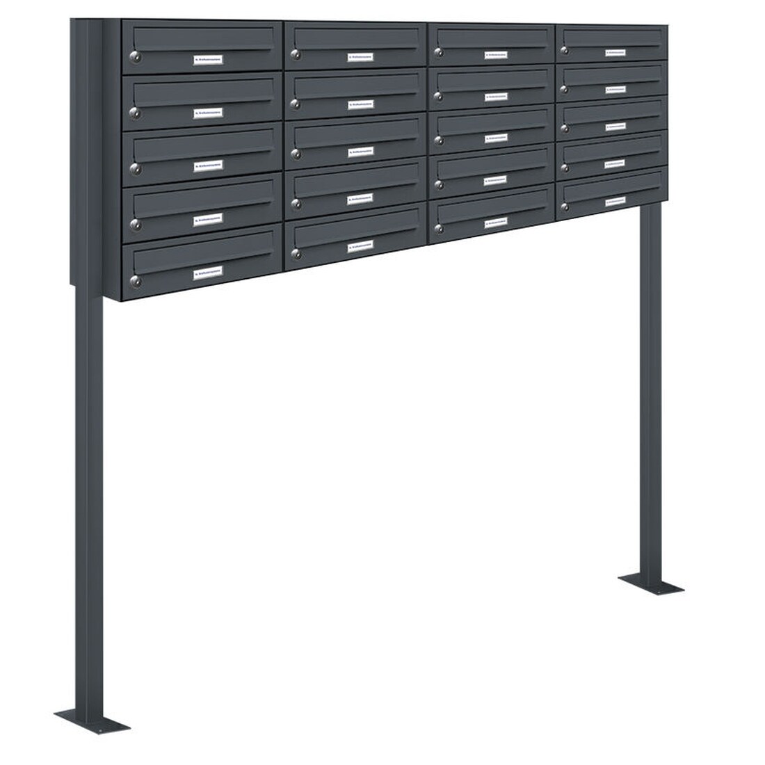AL Briefkastensysteme 20 Fächer Premium Stand Briefkasten Anlage in RAL 7016 Anthrazit Grau, Post A4, robust, wetterfest, Artikelnummer: 132P20S4P7016