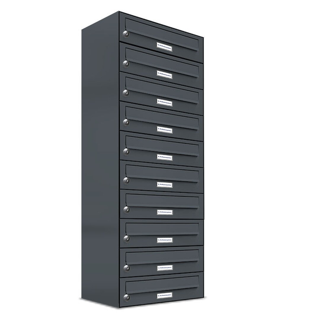 AL Briefkastensysteme 10 Fächer Premium Wand Briefkasten Anlage in RAL 7016 Anthrazit Grau, Post A4, robust, wetterfest, Artikelnummer: 132P10EA1P7016
