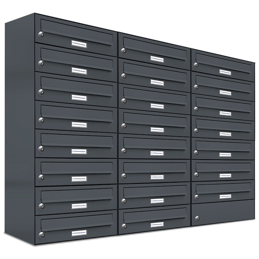 AL Briefkastensysteme 23 Fächer Premium Wand Briefkasten Anlage in RAL 7016 Anthrazit Grau, Post A4, robust, wetterfest, Artikelnummer: 132P23EA3P7016