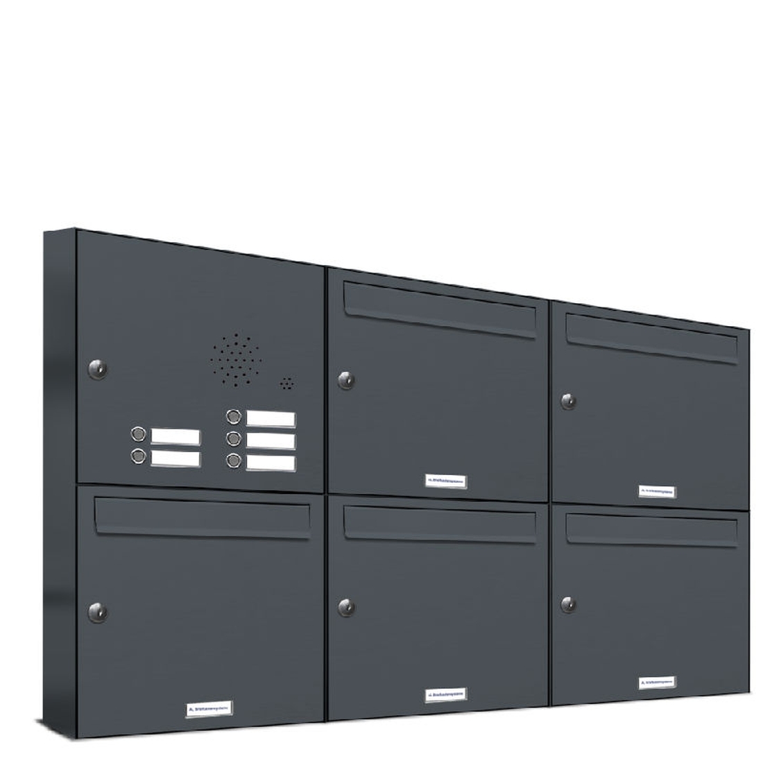 AL Briefkastensysteme 6 Fächer Premium Durchwurf Briefkasten A4 RAL 7016 Anthrazit Grau, Post A4, robust, wetterfest, Artikelnummer: 331P6DZ3KSRP7016