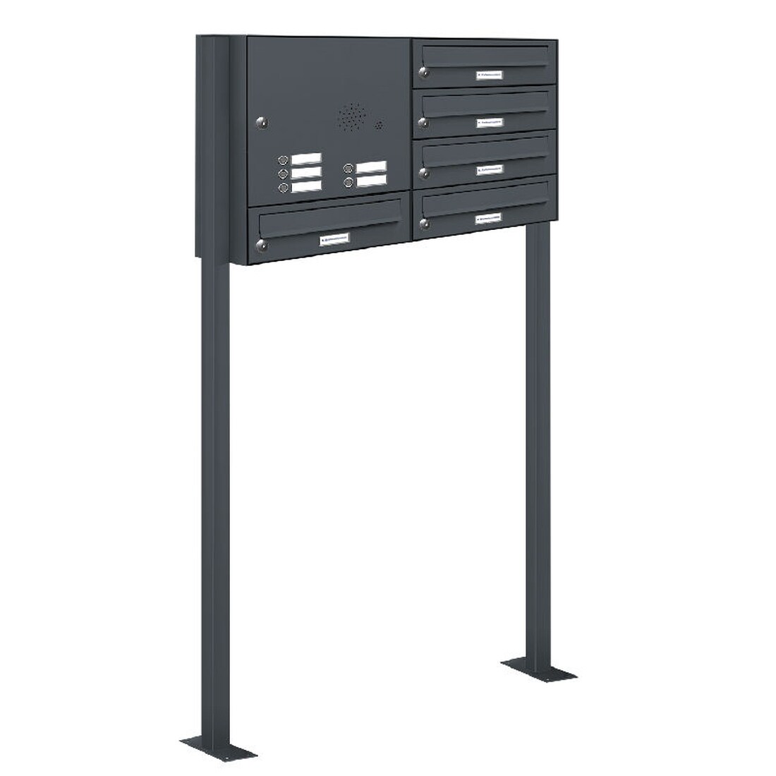 AL Briefkastensysteme 4 Fächer Premium Stand Briefkasten Anlage in RAL 7016 Anthrazit für Post A4, robust, wetterfest, Artikelnummer: 132P4S1KSP7016