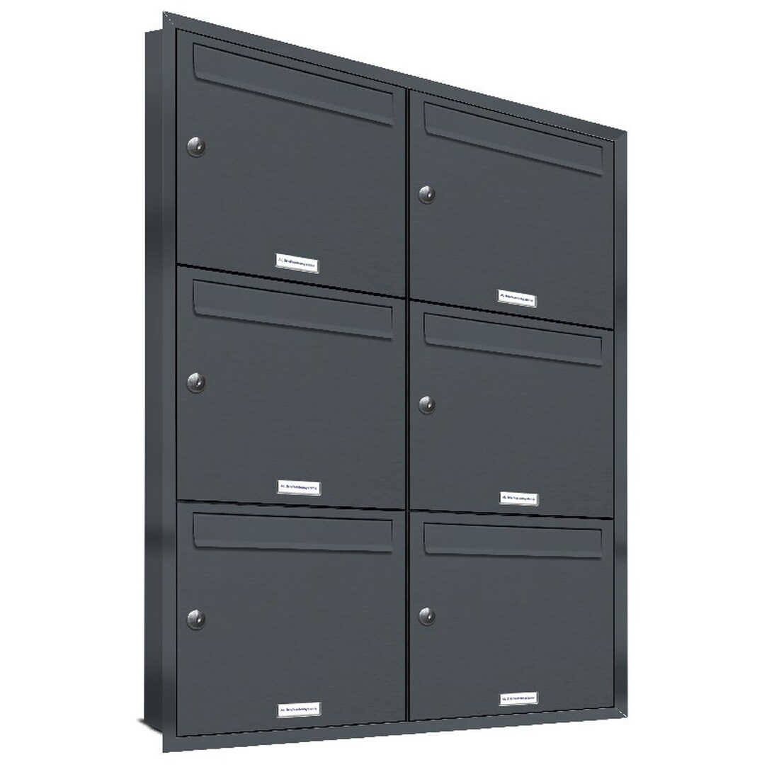 AL Briefkastensysteme 6 Fächer Premium Unterputz Briefkasten Anlage RAL 7016 Anthrazit Grau, Post A4, robust, wetterfest, Artikelnummer: 331P6U2P7016