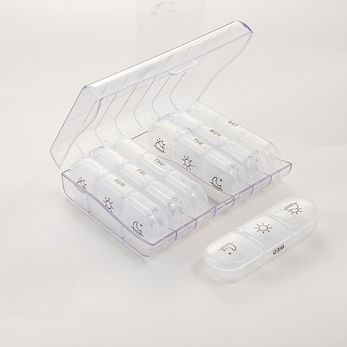 Portapillole settimanale portapillole portatile da viaggio per 3 volte al giorno, 7 giorni, con ampi scomparti per vitamine, medicinali, oli di pesce